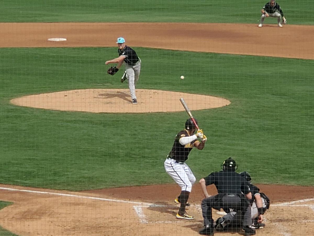 Ballpark Buzz … Cronenworth made the defensive gem of the day in the third when, with Barnhart at first following a lead-off walk, Jake McCarthy lined a ball toward first. Cronenworth dove toward the line, snaring the ball on one hop. He jumped to his feet, stepped on first, spun and nailed Barnhart at second for the double play. … Hats off to the Peoria Sports Complex staff. My wife has a walker and they graciously stored it in a nearby wheelchair area as we made our way up the stairs to section 201 behind home plate.