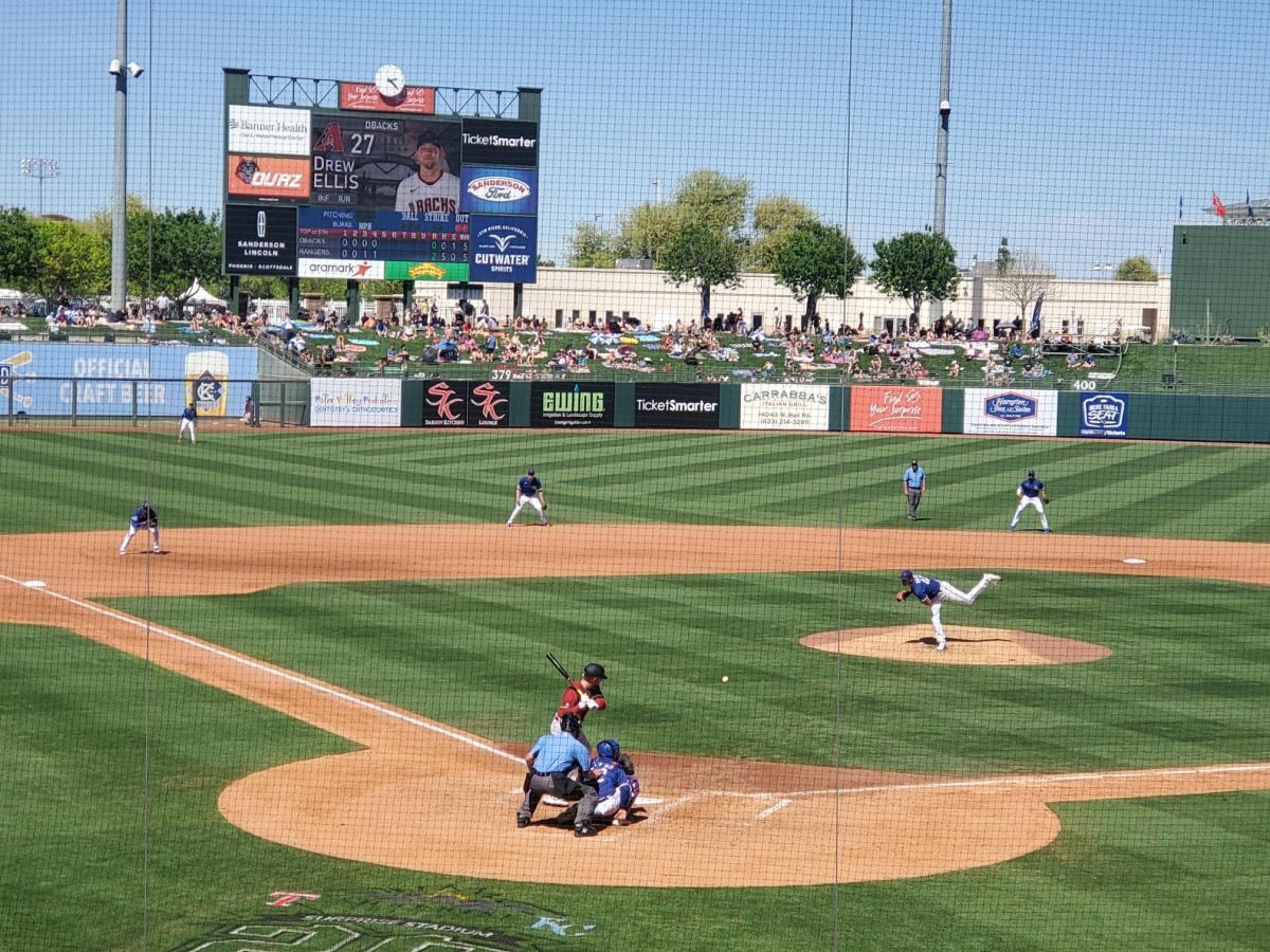 Ballpark Buzz … Attendance of 5,005 seemed a generous number. … The JUGS Gun radar rap sheet: Bush–97, White–95, Kent–96, Richards–94, Bieber–91, Morgan–93 … Both clubs played the shift ad nauseum, perhaps 75% of the time. When lefty Calhoun came up in the sixth, Cleveland played him as a dead pull hitter. No fielder could be found on the left side of the infield. Kole might want to work on his bunting. … After Garcia’s two-run poke, Kwan had the most impressive at bat in the sixth. The lefty — who crowds the plate like a slugger — inside-outed a Joe Barlow pitch, mashing an opposite field clothesline rope that careened into the left field corner for a double. … Looking for a deep fantasy dark horse reliever? Say no more. The Guardians’ Eli Morgan dazzled with his deceptive, sneaky-fast 93-mph heater that seems to come out of his armpit. He struck out Corey Seager, Lowe, Solak and Cameron Cauley in three innings of work. Morgan only allowed a Marcus Semien single in the seventh, Semien’s only hit in a 1-for-4 night. In two spring appearances totaling five innings, Morgan has struck out six, walked none and allowed three hits to land in the Guardians bullpen. Stash ‘im if ya need ‘im. … It’s been a great, abbreviated-but-welcomed spring in the Cactus League. Opening Day draws near with everybody chomping at the first place bit. See you next year. Same bat time. Same bat website.